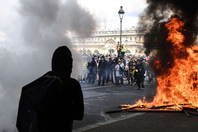 ところが、この医療介護者のデモの中に白衣などを着て、医療介護者に変装していたデモを暴徒化する集団が紛れ込んでいたのです。厚生省を出発して、デモ隊の行列がアンヴァリッドに到着した時、紛れ込んでいた偽医療介護者や黒い服に身を纏った一団に、本来のデモは中断せざるを得ない状態に陥りました。